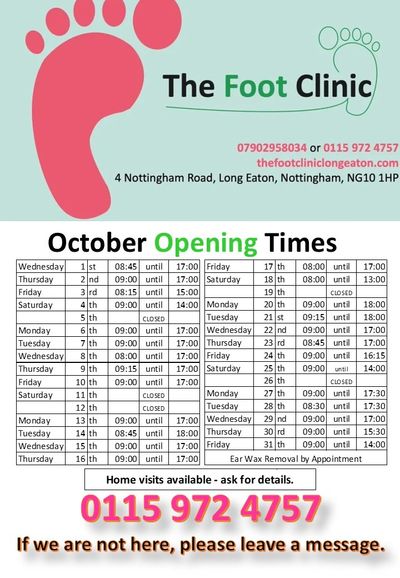 We have been serving the Long Eaton community for 20 years. We are the appointed foot care service for several Derby County Council care homes,